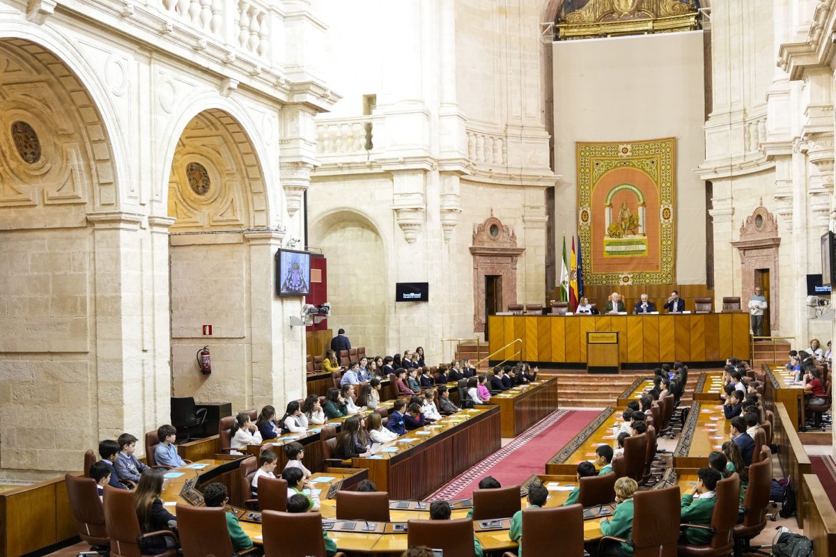Sevilla, 23 de febrero de 2026. Con el objetivo de fomentar el valor de la convivencia y reflexionar sobre el uso adecuado y seguro de los entornos digitales, Aldeas Infantiles SOS ha celebrado esta mañana en el Parlamento de Andalucía un pleno infantil en el que 105 escolares de Educación Primaria de los colegios SEK International School Alborán, de El Ejido (Almería); Maestro Juan Apresa, de Arcos de la Frontera (Cádiz); Antonio Machado, de Lucena (Córdoba); Ave María Varadero, de Motril (Granada); Sebastián García Vázquez, de Puebla de Guzmán (Huelva); Santa Ana, de Linares (Jaén); y Juan XXIII, de Marchena (Sevilla), se han convertido en diputados por un día y han llevado sus propuestas al hemiciclo.